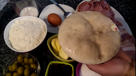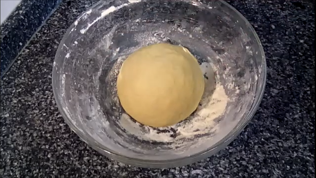 La ponemos ahora en un recipiente un poco enharinado y la tapamos con un paño de cocina y la dejamos por una hora aproximadamente para que la levadura haga su trabajo y duplique su tamaño.