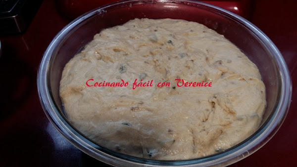 Estando ya todo unido y bien amalgamado pasamos la masa a un bol, sin amasar, tapamos con film y dejamos que doble volumen.