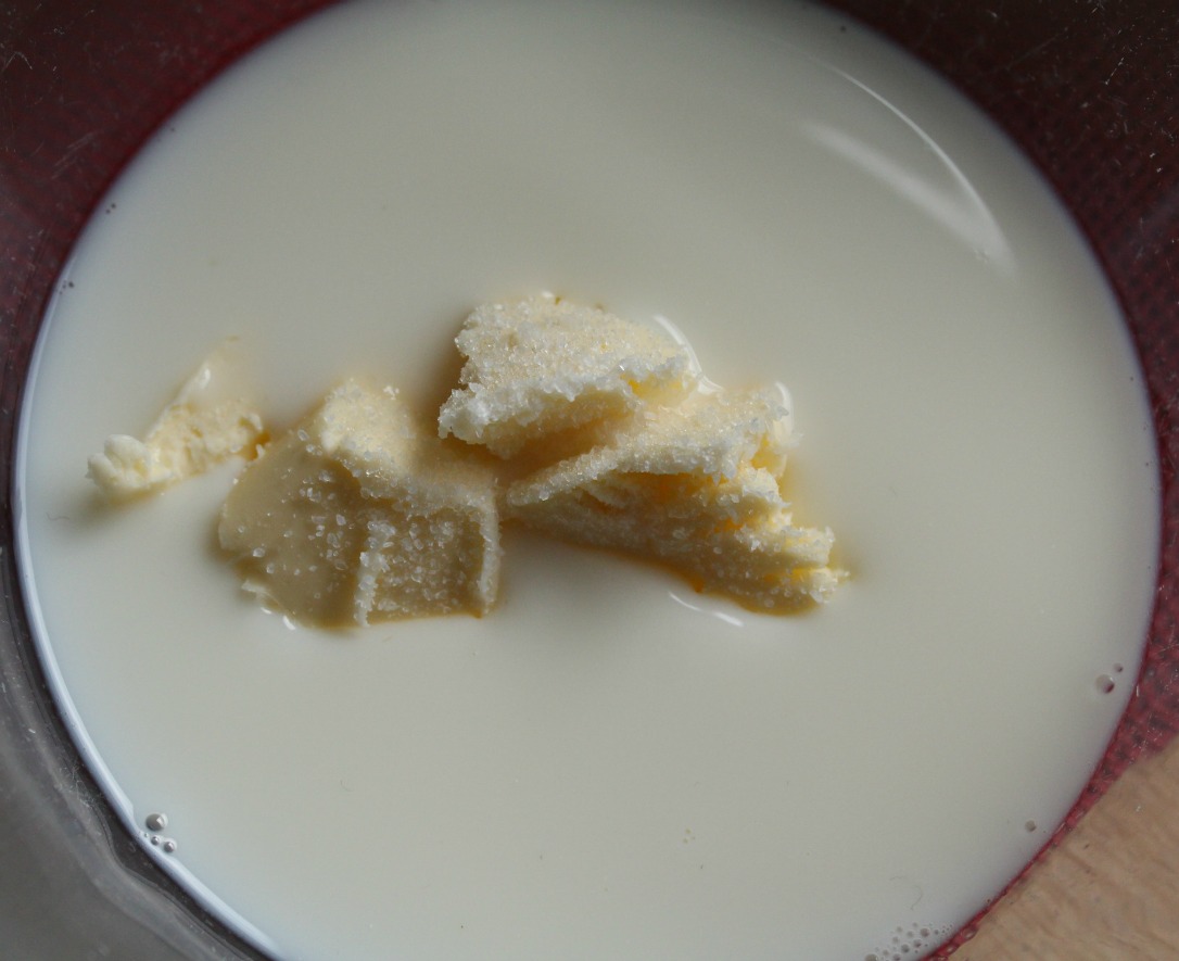 Templamos la mantequilla, junto con la leche y la sal; vertemos en un bol grande.