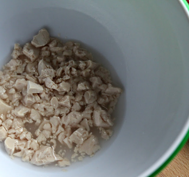 Disolvemos la levadura en un bol, junto con el azúcar en 3 cuacharadas de agua.