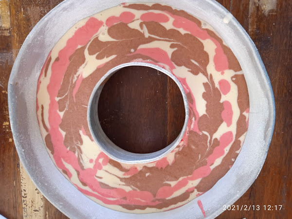 3.- Vacía al molde un poco de cada una de las mezclas alternando cada una de las tres.