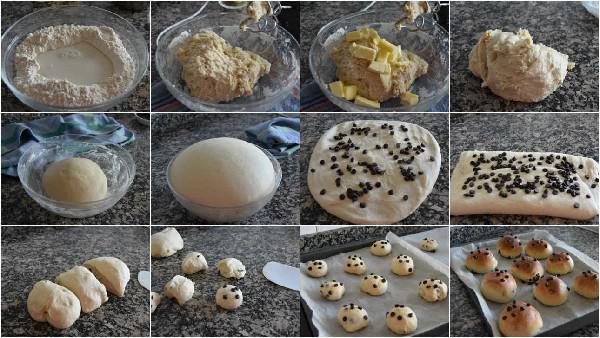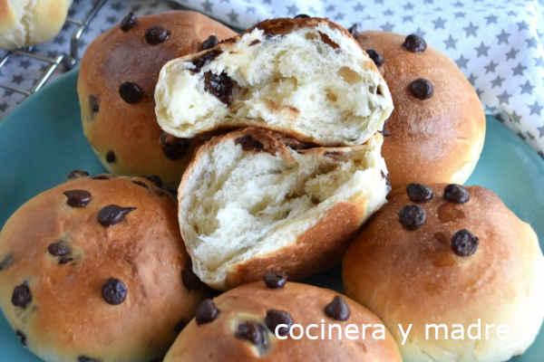 Dificultad: fácil Raciones: 15 – 16 unidades Tiempo: 40 minutos más fermentaciónIngredientes del pan de leche casero con pepitas de chocolate: