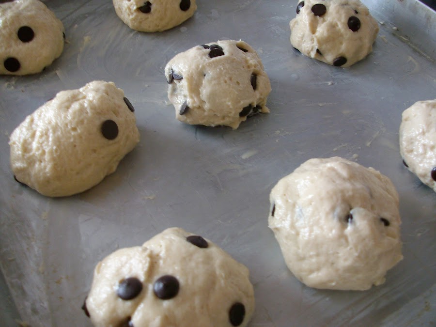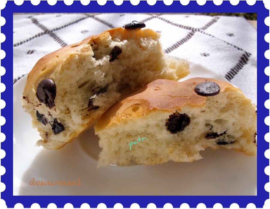 y entonces..añadir las pepitas.....y con las manos mojadas para que no se pegue la masa....darle forma redonda...volver a tapar ..y dejar levar....media hora mas...