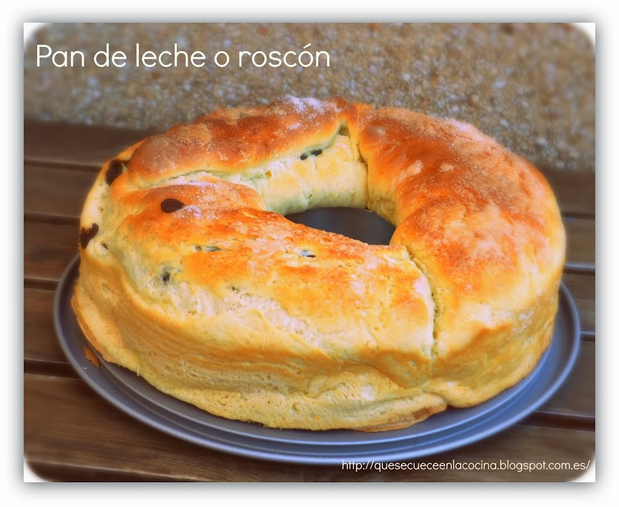 Añadir entonces un poco más de harina y volver a programar 2 minutos función amasar. Sacar del vaso a una superficie enharinada y trabajar un poco, me costó mucho sacar la masa porque estaba muy pegajosa y tuve que añadir algo más de harina para que no no se me pegara. Cuando tengamos la masa, tiene que seguir pegajosa, estirar con un rodillo y formar un rectángulo. Es el momento de rellenar bien con crema pastelera, dulce de leche, chocolate o con pepitas como hice yo. Se enrosca como un rollo y se forma un círculo. Se cierra bien se pone en un molde o en la bandeja de horno con papel. Se puede poner un aro en el centro para mantener el agujero. Se deja levar y se pinta con huevo batido, azúcar y los adornos que se quieran.