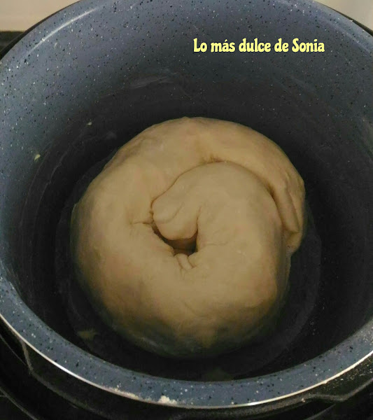 Enrollamos, damos forma de espiral y volvemos a poner en la cubeta y elegimos menú fermentar 45 min.