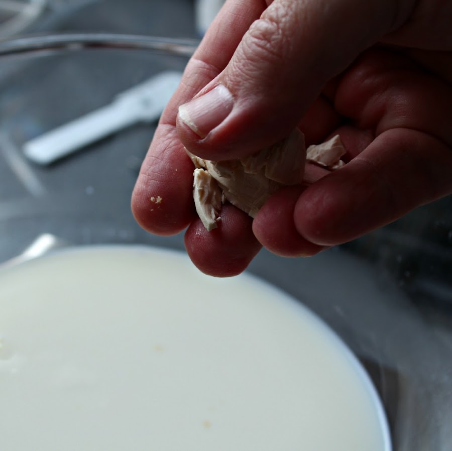Quítate los trozos de masa que se te han pegado en los dedos y devuélvelos a la "masita". Déjala reposar, 10 minutos, tapada.