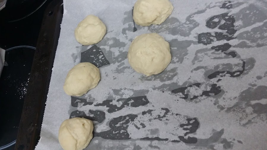Pasados las 4 horas pintamos las bolas o porciones con huevos batidos y metemos al horno, que habremos puesto a precalentar previamente a 180ºC. El horno para hacer los panes tiene que estar 180 - 200ºC y se dejaran aproximadamente, pero deberemos vigilarlos cuando lleven 15 minutos.