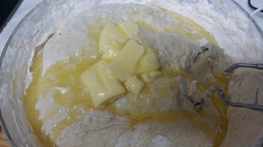 Después de este amasado debemos incorporar la mantequilla fundida ( para las personas como yo que no queremos perder tiempo usamos el microondas que es mas rápido) y amasamos otra vez durante 20 minutos mas.
