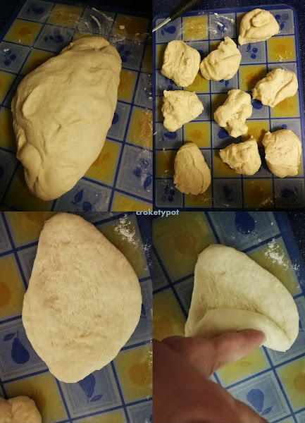 Pasado el tiempo que ya ha crecido la masa la estiramos y doblamos plegando varias veces, y se divide en porciones según lo grandes que queramos hacer, más pequeños si son bollos tipo mediasnoches o más grandes para suizo o bollo de leche.