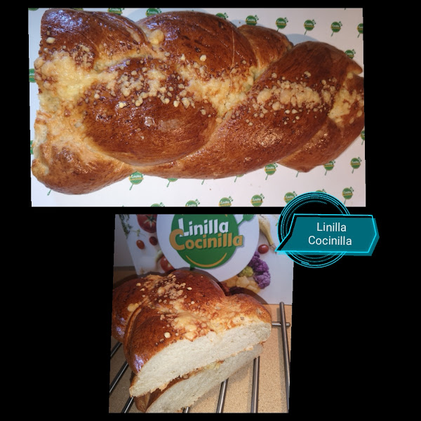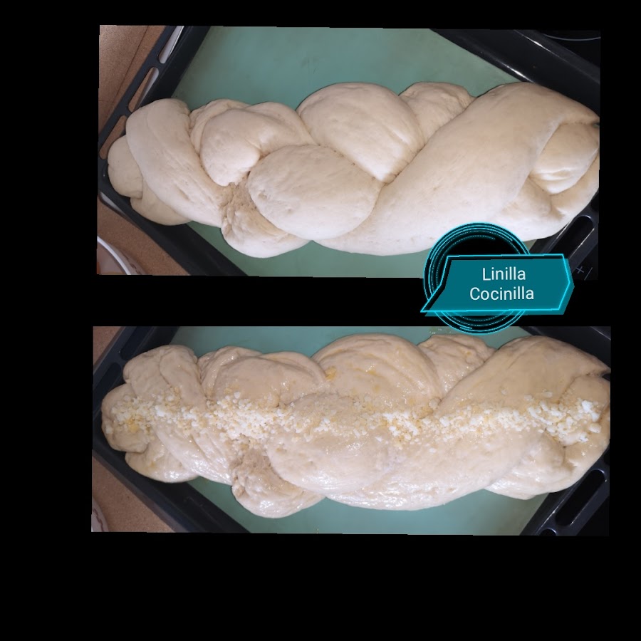 6. Pincele la trenza con el huevo batido y ponga queso rallado en medio (opcional).