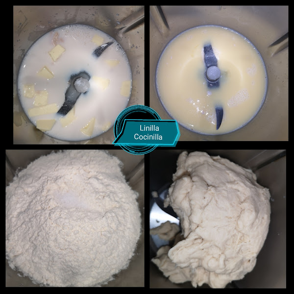 1. Engrase ligeramente un bol grande y reserve. Ponga en el vaso la leche, la mantequilla, la levadura prensada y el azúcar y temple 3 min/37ºC/vel 2.