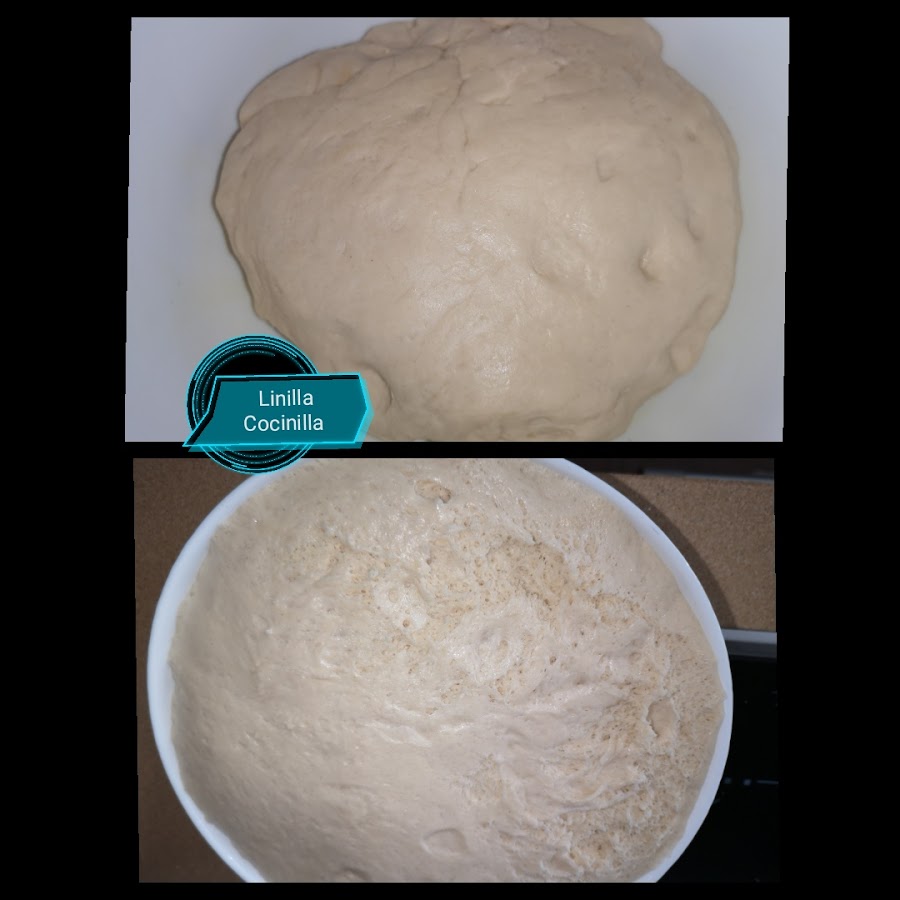 3. Ponga la masa en el bol preparado, cubra con film transparente o con un paño húmedo y deje reposar en un lugar templado hasta que doble su volumen (aprox 1 hora).