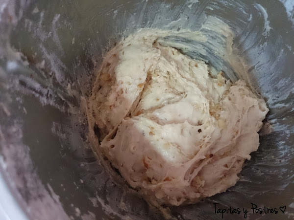 Incorporamos las nueces trituradas y amasamos de nuevo 30 segundos a velocidad espiga.