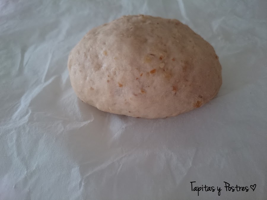 Sacamos y amasamos dando la forma que queramos, yo hice un cilindro alargado. Lo dejamos en un molde engrasado o cubierto con papel vegetal.