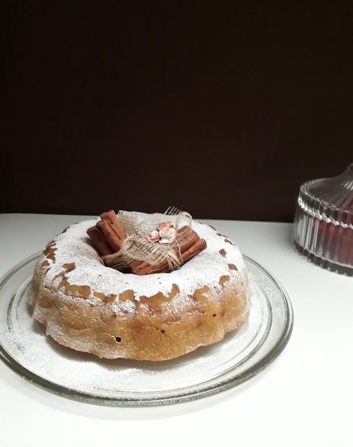 En un tazón mezcle la mantequilla,azúcar,vainilla,huevos y manzana rallada,cernir harina,polvo de hornear,bicarbonato,canela,nuez moscada y sal alternar lo cernido junto con la leche,de último coloque las pasas,verter a un molde de chimenea mediano bien engrasado,llevar al horno precalentado a 350grados f por 35min a 45 minutos o al introducir un palillo salga limpio,ya horneado dejar enfriar y desmolde.