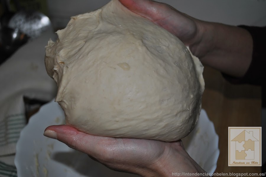 Pasado ese tiempo, sacamos del molde y volvemos a amasar ligeramente, tan solo para que la masa pierda aire.