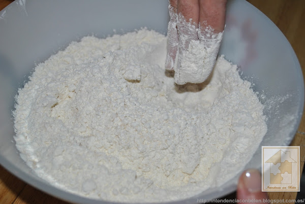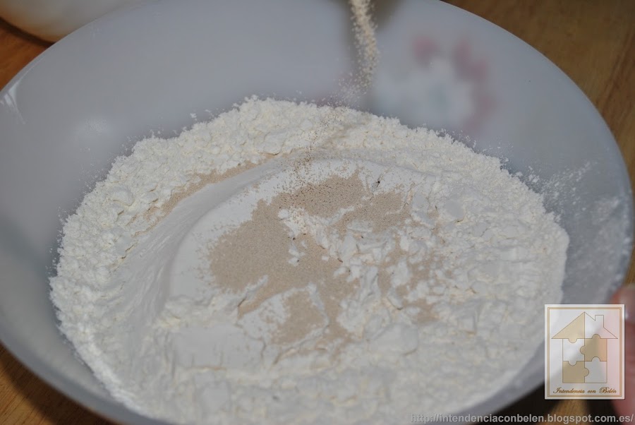En otro bol mezclamos la harina, la levadura y la sal y removemos bien, y añadimos a la mezcla anterior. Es importante que mezclemos bien hasta que podamos amasar.