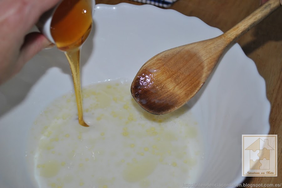 Añadimos la miel y seguimos mezclando.
