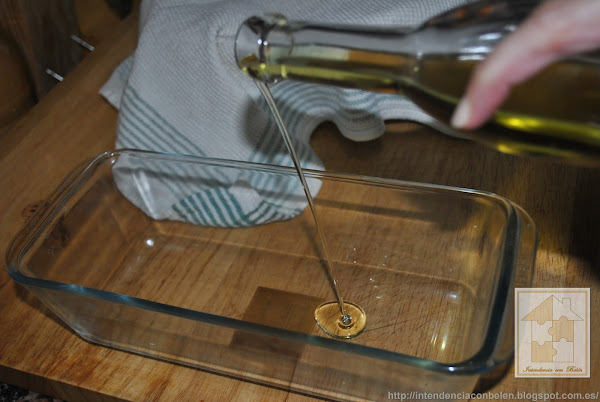 Untamos el molde con un poco de aceite y ponemos dentro la masa. Es importante retirar el exceso de grasa con un papel si es necesario.