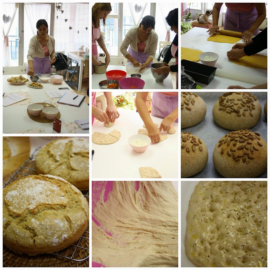 Este mismo pan hicimos en el taller Todo Panes que impartí en el atellier de Corina de Sweet Temptations donde disfruté la posibilidad de contagiarles a las alumnas la pasión por hacer pan casero, fue una gozada y el grupo excelente..