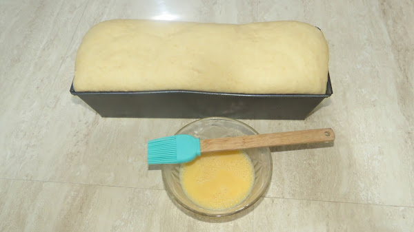 Una vez que dobla el tamaño pincelar con huevo batido con una cda de leche