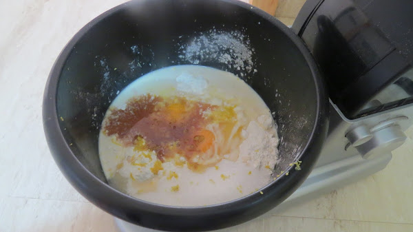En la leche disuelve la levadura y agrega en el centro de la masa junto con los huevos vainilla