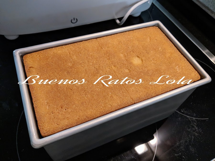 Sacamos sin quemarnos y extraemos de la caja. Ponemos a enfriar sobre rejilla y no cortamos hasta que esté totalmente frío