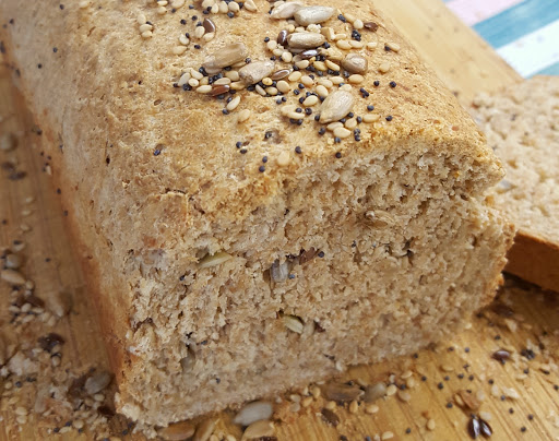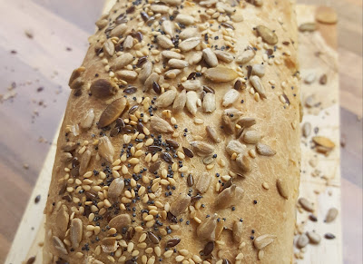 1. Templamos la leche en el micro 1min.2. Añadimos la levadura desmigada a la leche, mezclamos y reservamos.3. En un bol grande, volcamos la harina integral de centeno, hacemos un hueco en el centro e incorporamos los demás ingredientes: el aceite, la cucharada de miel, la leche con la levadura y la sal.4. Amasamos en el bol hasta conseguir una masa nada pegajosa.5. Después amasaremos sobre encimera enharinada y formamos una bola. 6. Dejamos la bola reposar en el bol tapado con un trapo durante 1h.7. Estiramos con ayuda de rodillo y espolvoreamos con las semillas, pasando el rodillo también por encima para que queden bien integradas en la masa.8. Enrollamos, como si fuera un brazo de gitano, y metemos en molde rectangular, previamente engrasado con aceite de oliva.7. Pincelamos la superficie con otro poco de aceite o leche y decoramos con más semillas por encima.9. Horneamos a 200° durante 35 min