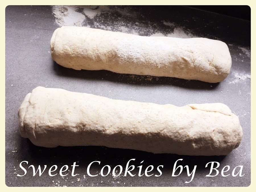 Ahora cogemos la masa y la enrollamos, haciendo dos rulos