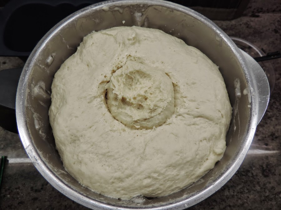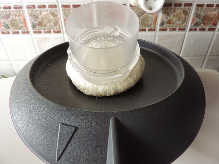 Metemos la cubeta dentro de la olla APAGADA y tapamos hasta que la masa doble el volumen.