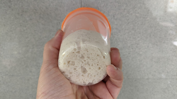 10 g de aguaLa dejé unas 5 horas a temperatura ambiente de 20 grados (siempre reservo 5 g para seguir refrescando)
