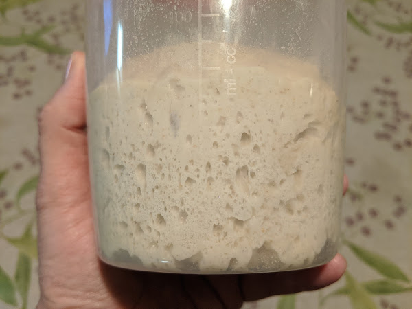 Esta es la cantidad mínima de biga que preparo. Se mantiene muy bien unos días en la nevera y así tengo para otras elaboraciones.