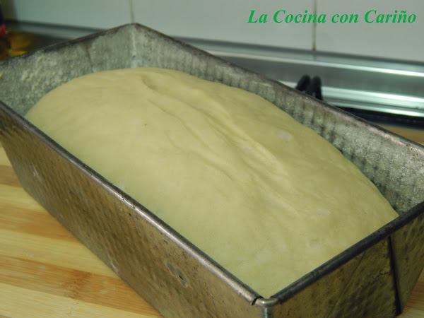 Una vez tenemos integrados todos lo ingredientes, ponemos un poco de harina en la mesa, tabla, etc., y empezamos a amasar, al menos por 6 ó 7 minutos. Metemos en el horno con un trapo por encima y dejamos fermentar hasta doblar el volumen. Como unos 45-50 minutos. Sacamos nuestra masa y quitamos el aire, apretándola. La metemos en un molde con las paredes engrasadas con mantequilla y con harina espolvoreada. Tapamos nuevamente y metemos otra vez en el horno.