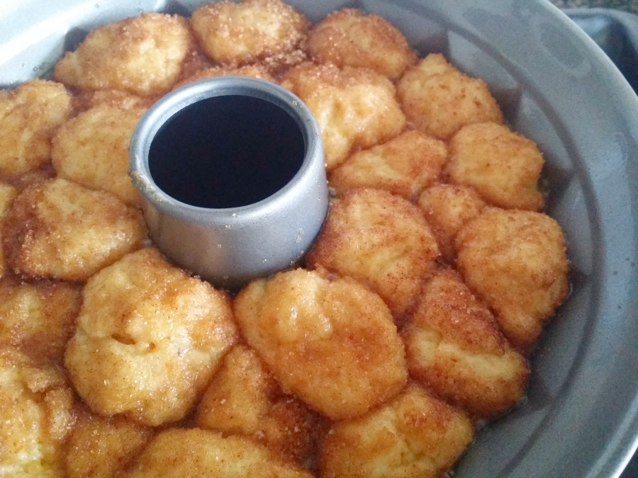 *Yo muchas veces hago este bizcocho en la panificadora, porque me es más cómodo. Simplemente pongo todos los ingredientes en la cubeta, y pongo en marcha el programa de amasado. Una vez que termina, formo las bolitas, las paso por la mezcla de azúcar y canela y entonces, ya lo dejo reposar en el molde de bundt en lugar cálido. Como la panificadora durante el tiempo de levado le proporciona calor, esto ayuda a que la masa crezca antes.
