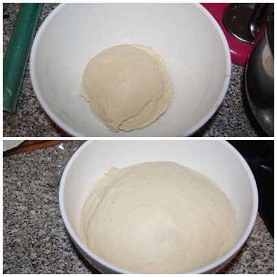 Cuando tengamos una masa muy lisa y que apenas se pega la colocamos en un bol engrasado, la tapamos con papel film y dejamos que duplique su volumen.