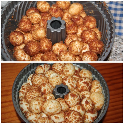 Colocamos todas nuestras bolitas (nos saldrán entre 70 y 90) en un molde bien engrasado y lo volvemos a dejar levar hasta que de nuevo duplique su volumen.
