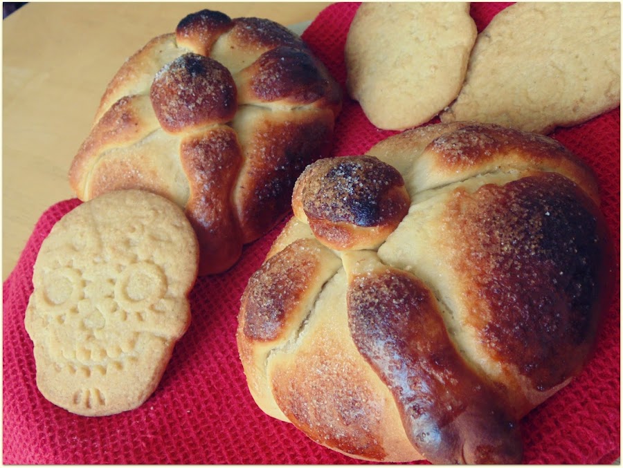 Día de los Muertos mexicano en el que se realizan altares en honor a los difuntos con fotografías de la persona extrañada, comida y bebida favorita, sal para purificar el alma, velas, flores y demás cosas entre las que se incluye el pan. Es una de las ofrendas que se presentan en este día tan señalado en la cultura mexicana. El pan de muerto es una elaboración que simboliza este día. La textura es parecida al bollito de leche y al llevar agua de azahar esta receta, nos recuerda el sabor al roscón de reyes. Se suele espolvorear con azúcar o ajonjolí. Está delicioso y es una buena oportunidad para probar cosas nuevas y apreciar otras maneras de conmemorar este 2 de noviembre. Vamos a la receta!
