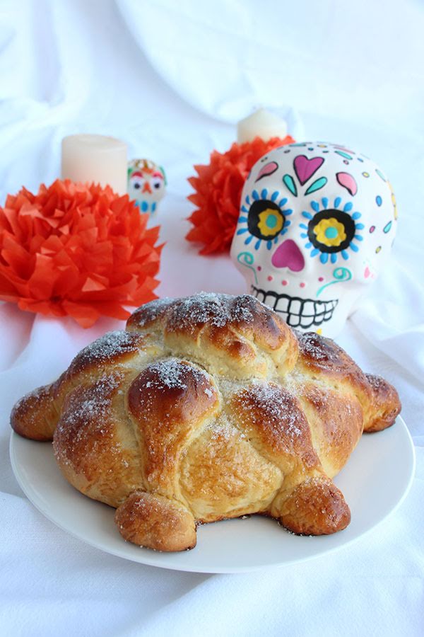 En estos altares no puede faltar el pan de muerto que es un pan redondo con una bola en la parte central superior que representa el cráneo y unas hileras de la propia masa que representan los huesos.