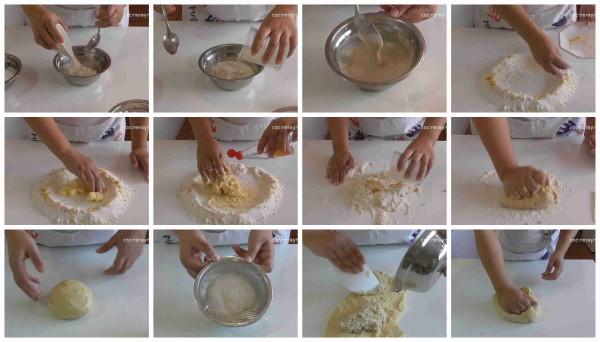 Poco a poco a poco vamos integrando la harina y el resto de ingredientes y añadimos unas gotas de agua de azahar; además la leche la añadiremos de poco en poco, en función de lo seca que este la masa y solo añadiremos toda si fuera necesario.