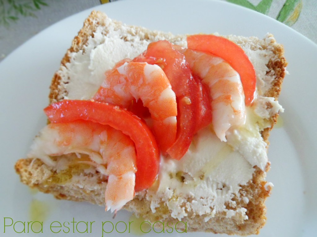 Pero, ¿y fuera del desayuno? En rebanadas bien gorditas, es perfecto para preparar tostas de lo que más os guste, como ésta de crema de queso de cabra, langostinos, tomate y aceite de oliva. ¡Ideal para la cena!