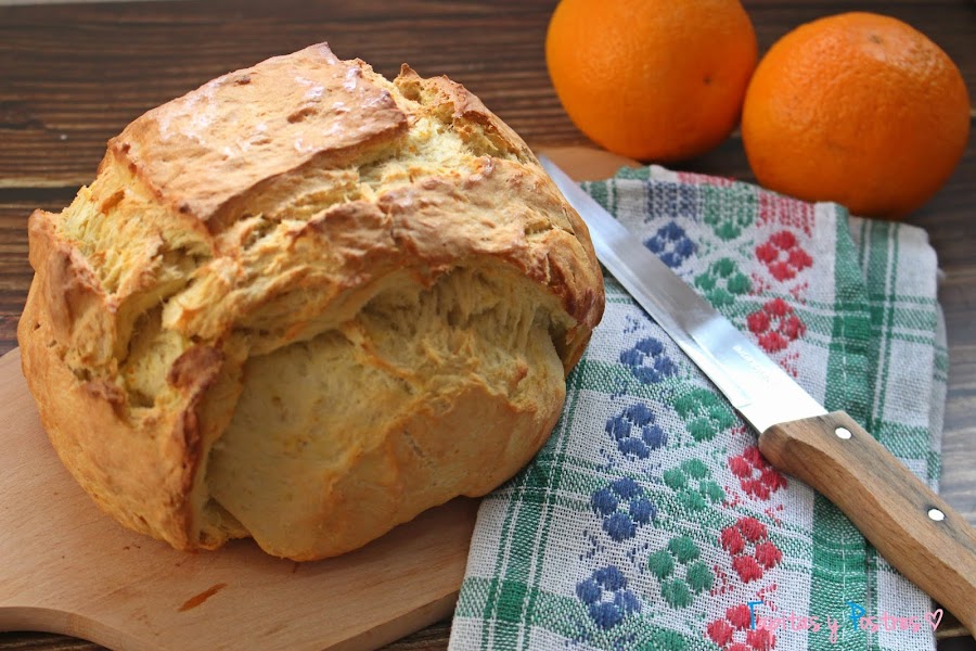 Entre esas deliciosas recetas está este pan de naranja que se hace en una hora. Sí, sí, en una hora. Es una variante del famoso pan rápido o pan pyrex que se puso de moda hace un tiempo. Sólo que este pan tiene en su masa zumo y ralladura de naranja, lo que le da un toque único y un cierto sabor a roscón.