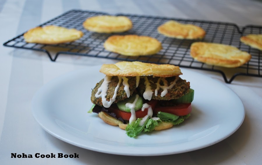 A continuación os dejo una sugerencia con la que acompañar este falso pan. Un sandwich de falafel de garbanzos, con tomate y lechuga. Estaros atentos para la receta del falafel.