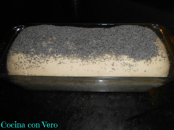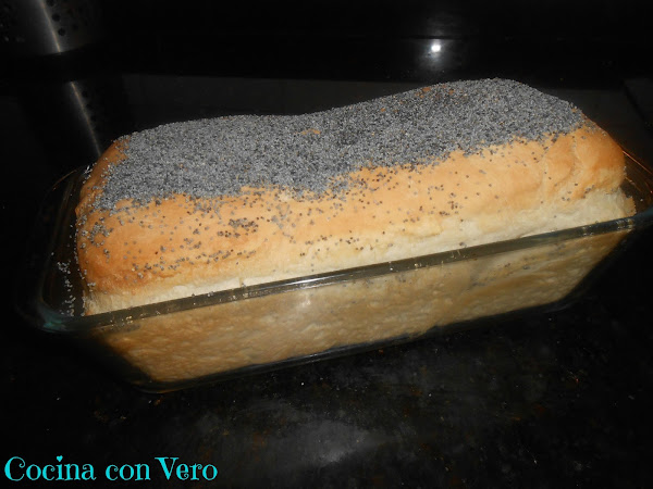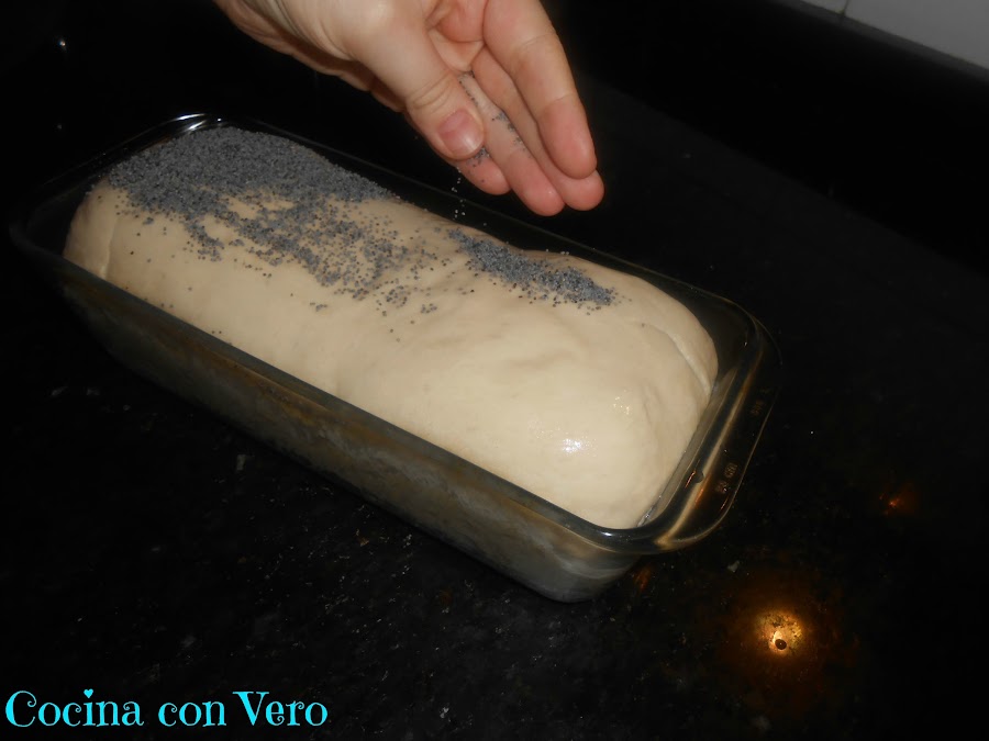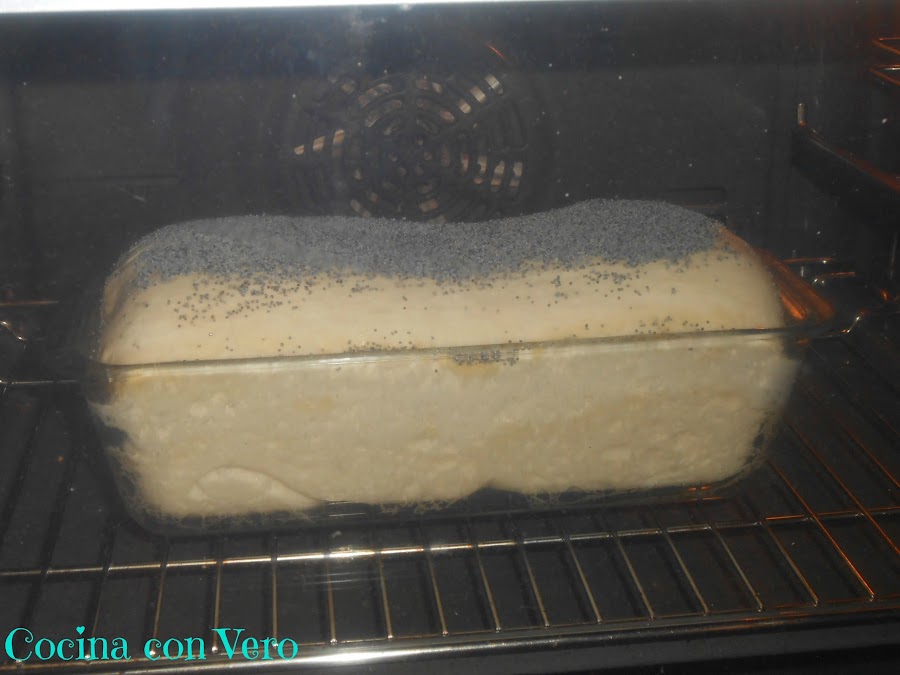 Por encima del pan añadimos las semillas de amapola y precalentamos el horno a 185ºC. Cuando alcance esa temperatura lo metemos y lo dejamos por espacio de 20-25 min. aprox. Pasado ese tiempo metemos un palillo largo de brocheta y si sale limpio es que está bien cocido.