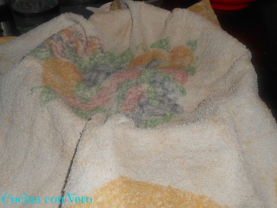 Lo dejamos reposar en el bol y lo cubrimos con un rodillo de cocina.