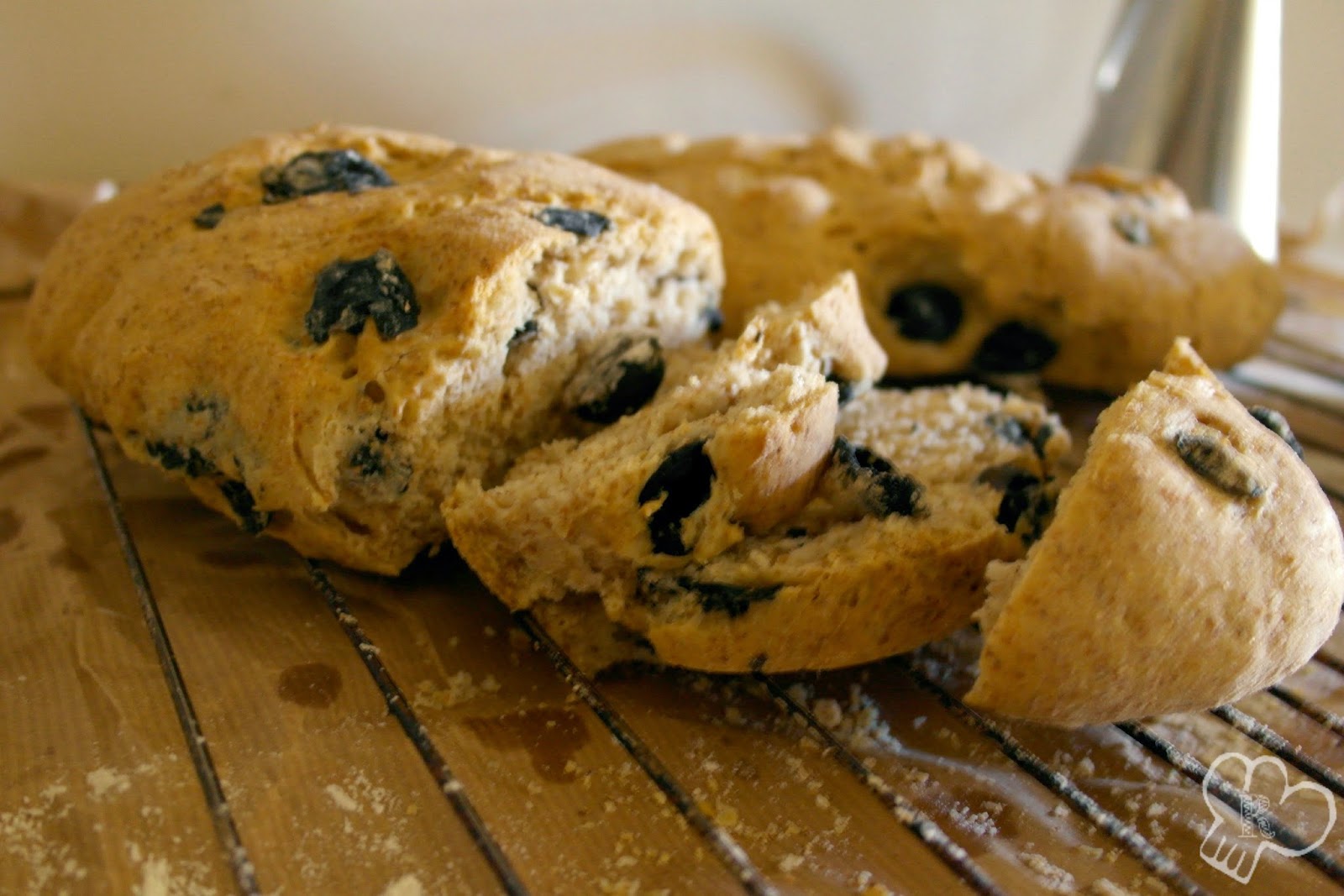 Realmente no he encontrado la receta más típica, así que en mis conocimientos base de buena amante y comilona empedernida de pan, me he permitido el lujo de improvisar y experimentar, fruto de ello ha salido la receta de hoy, que francamente ha salido mejor de lo esperado. Receta que prepararé muchas mas veces, y que resulta un pan muy adecuado para acompañar quesos y patés! Tiene un sabor característico gracias a los tropezones de olivas que te vas encontrando.