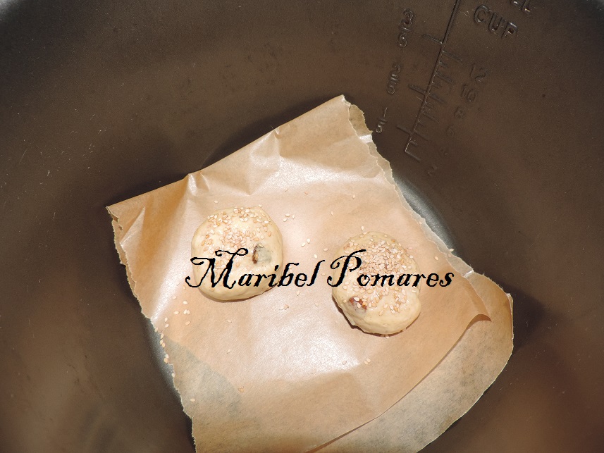Ponemos papel de horno en la cubeta de la olla y vamos colocando las porciones.