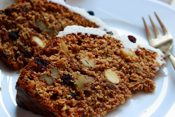 Recuerdo que cuando llegaba Diciembre mi Nonna empezaba hacer muchos Panes de Pascua (Pan de Navidad) para casa y para regalar a cada uno de sus hijos y amigas, estos eran deliciosos la pena fue que nadie tiene la receta de ese riquísimo pan que ella hacía , así es que en vista de las circunstancias cuando llegué a España quise hacer un Pan de Pascua que se pareciera al de ella, para eso tuve que ver recetas en Internet y probé muchas hasta que llegué a una que está buenísima y además se parece mucho a la receta que ella hacía, es decir al sabor que recuerdo, la receta es del blog Cocina Chilena de Angélica Bertin, entonces basándome en esa receta hice una versión sin harina refinada y sin azúcar refinada, además agregué un poco más de especias porque a mi me gusta así y las frutas deshidratadas las dejé en ron durante 3 días (que esto si recuerdo muy bien que lo hacía mi Nonna).