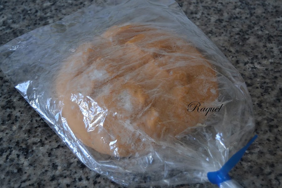 Ahora ponemos un poco de harina encima del mármol y seguimos amasando durante diez minutos, yo lo he hecho con la maquina 3 minutos velocidad espiga y después un amasado con las manos de tres minutos.