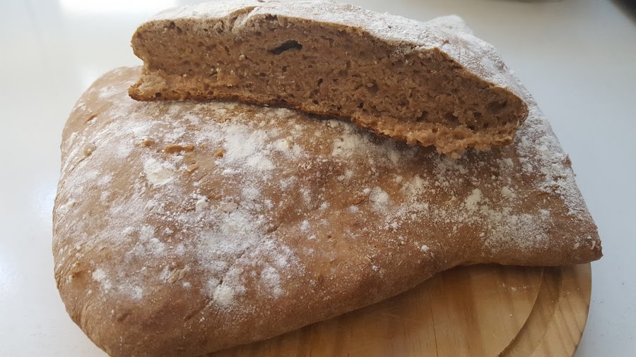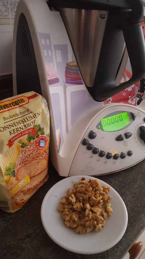 2.- Añadimos la harina de pipas y las nueces y amasamos 20 segundos, velocidad 6.