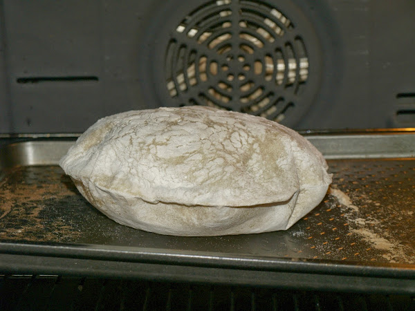 - Metemos las masas alisadas en el horno precalentado a 240º C. Cuando pongamos el horno a calentar debemos meter una bandeja de metal para que se caliente también. Es muy importante que el horno y la bandeja estén muy calientes en el momento de meter los panes, para que se hagan bien y se hinchen. Es FUNDAMENTAL para que queden bien. Dejamos cocer 5 - 6 minutos (lo mejor es vigilarlos). No deben dorarse, o quedarán duros (que quedan muy ricos pero eso, duros, como una torta). Son panes blancos así que no os preocupéis por el color, que no quedan crudos. Quedarán bien hechos, bien cocidos (a mí con la harina que tuve que añadir para manejar la masa me quedaron incluso más blancos, pero no importa, quedan muy bien).